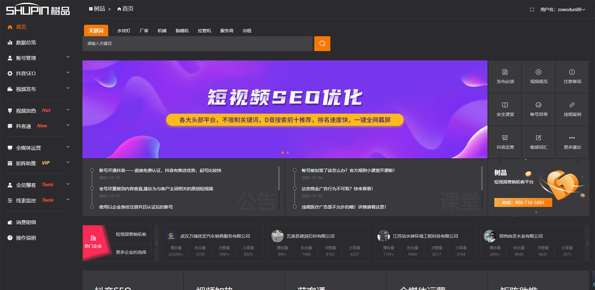 樹品是由南方網(wǎng)通自主研發(fā)的基于企業(yè)的短視頻矩陣及內(nèi)容進(jìn)行全面的AI短視頻生態(tài)場景營銷。